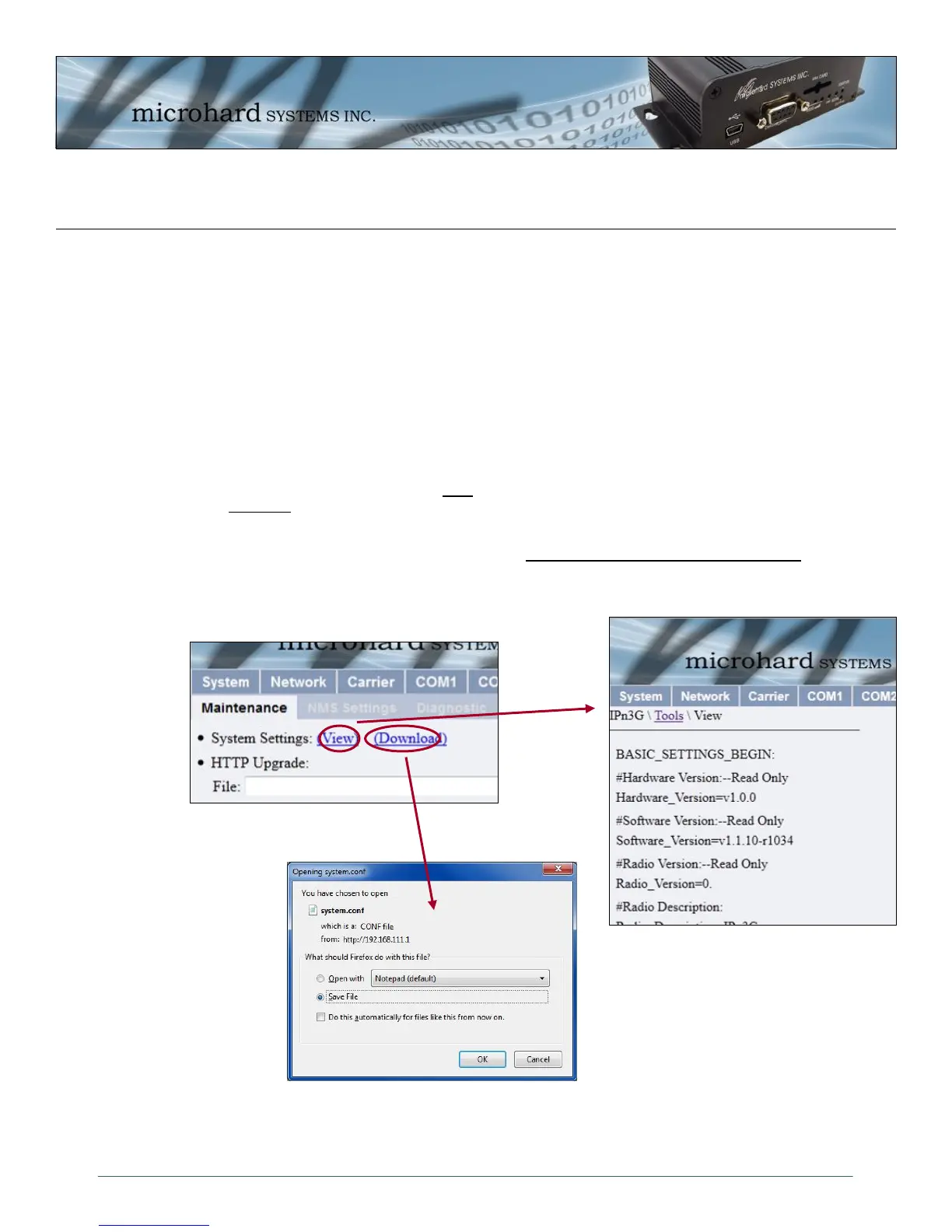 file. This file may be useful for reference or requested by Microhard Support to aid in any required