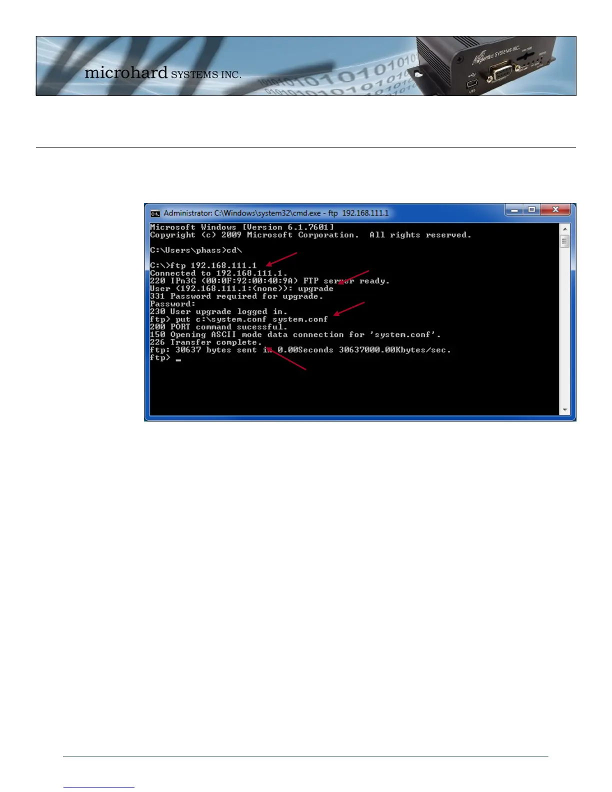 A system.conf file can be also be uploaded to the IPn3G using FTP as seen below:
