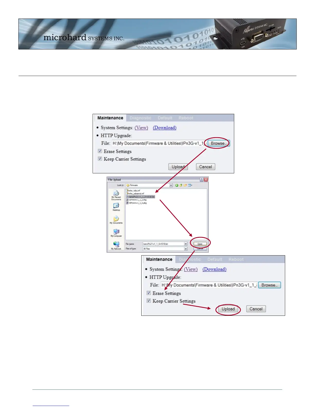 HTTP Upgrade is used to upgrade the IPn3G ’s system software (firmware). Select the Browse button to