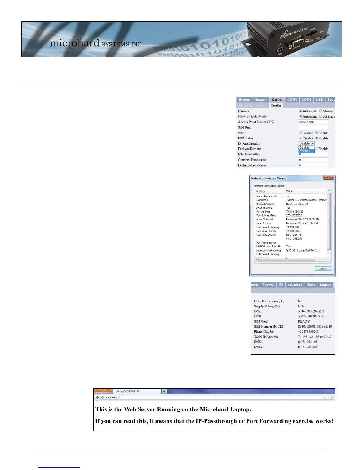 IP-Passthrough operation can also be verified in the IPn3G. Once IP-