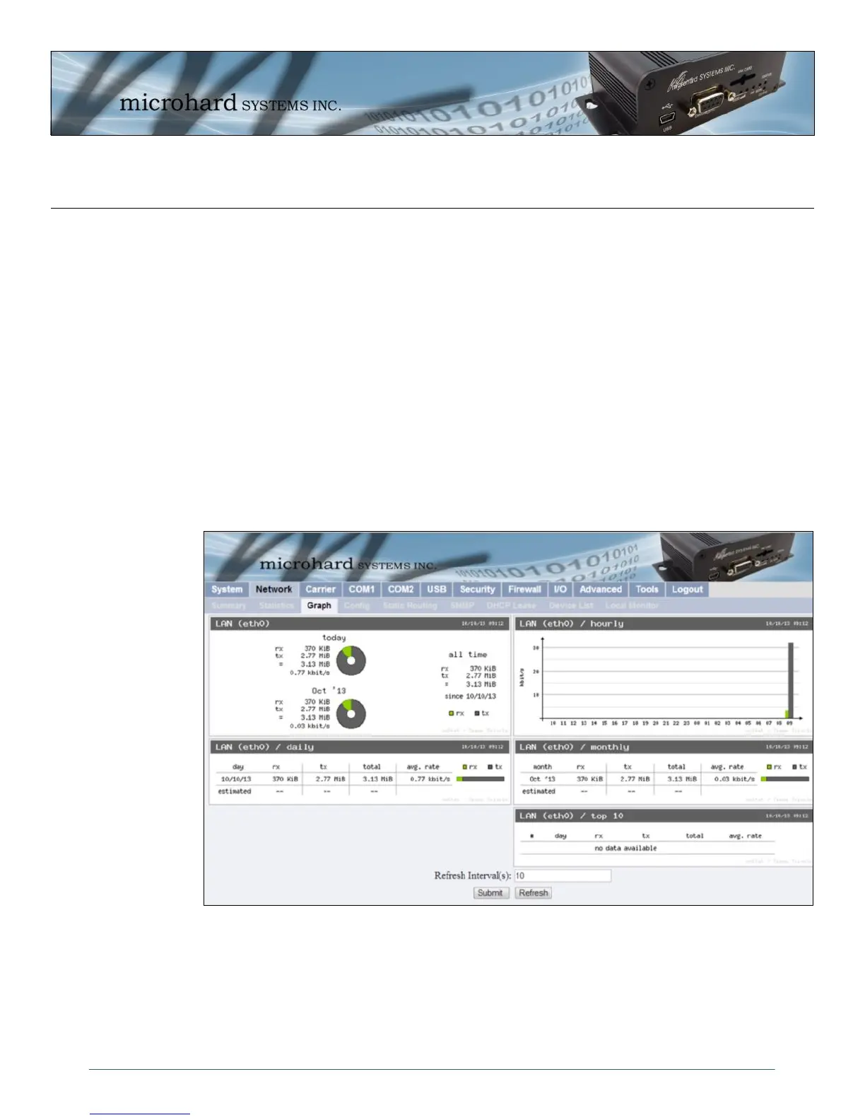 LAN (eth0) / monthly Shows the total data received and transmitted for the current month, as well as
