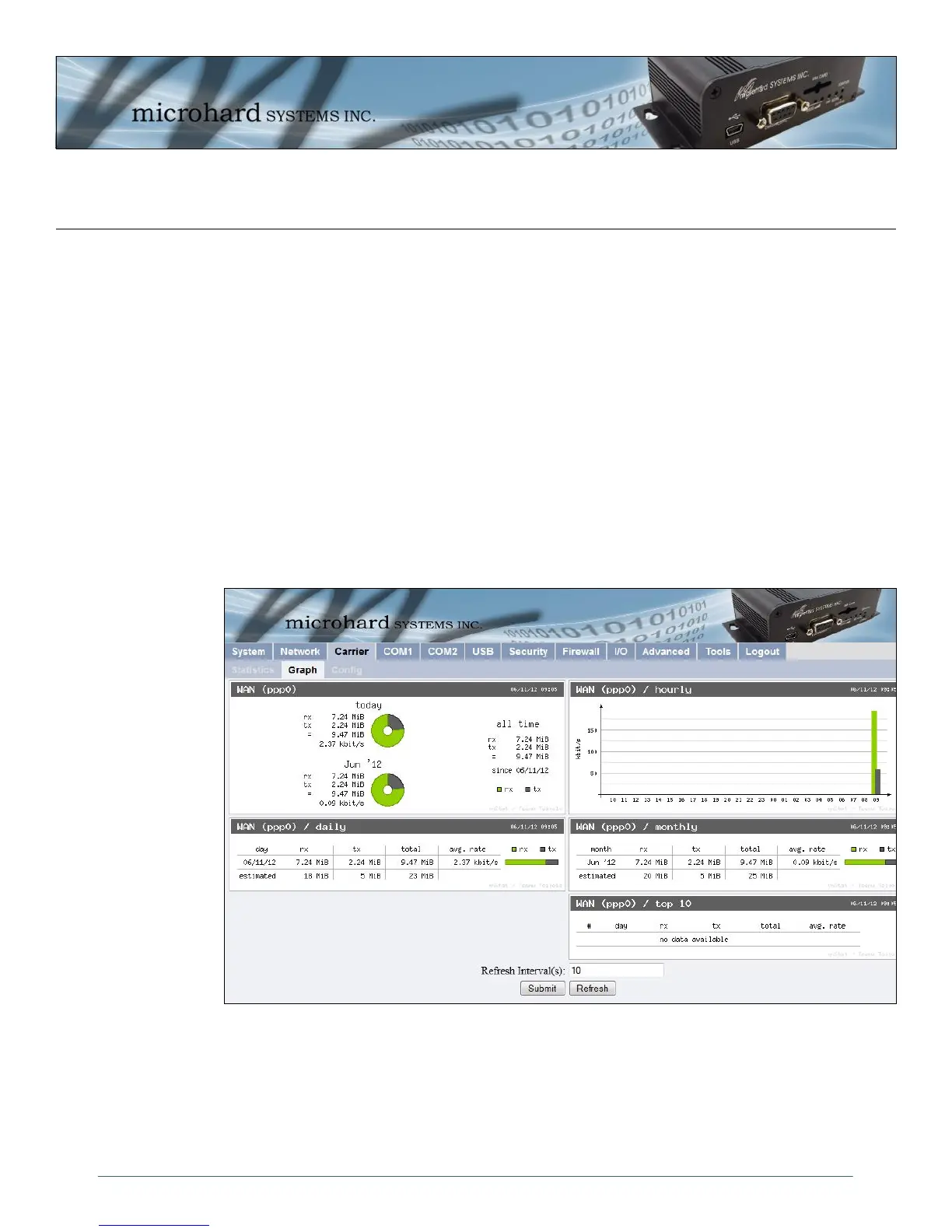 WAN (ppp0) / monthly Shows the total data received and transmitted for the current month, as well as