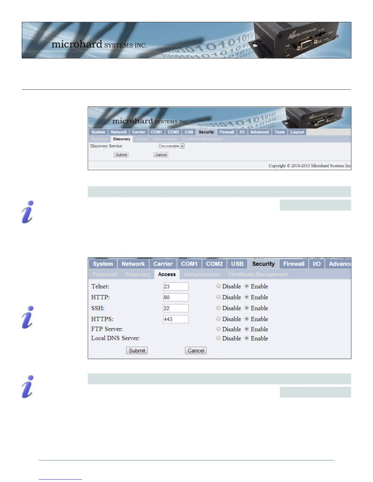Image 4-34: Security Config. Menu, Discovery Service Config. Submenu