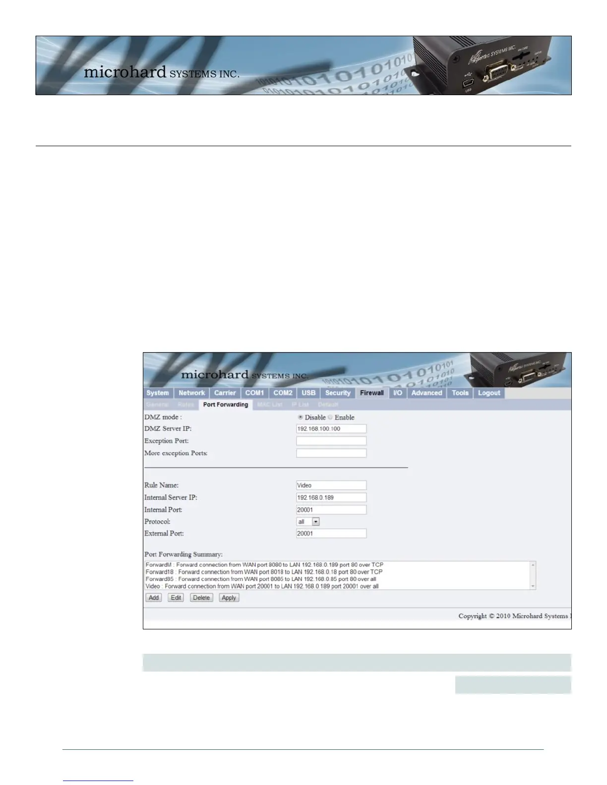 Image 4-40: Firewall Configuration, Port Forwarding Config. Submenu