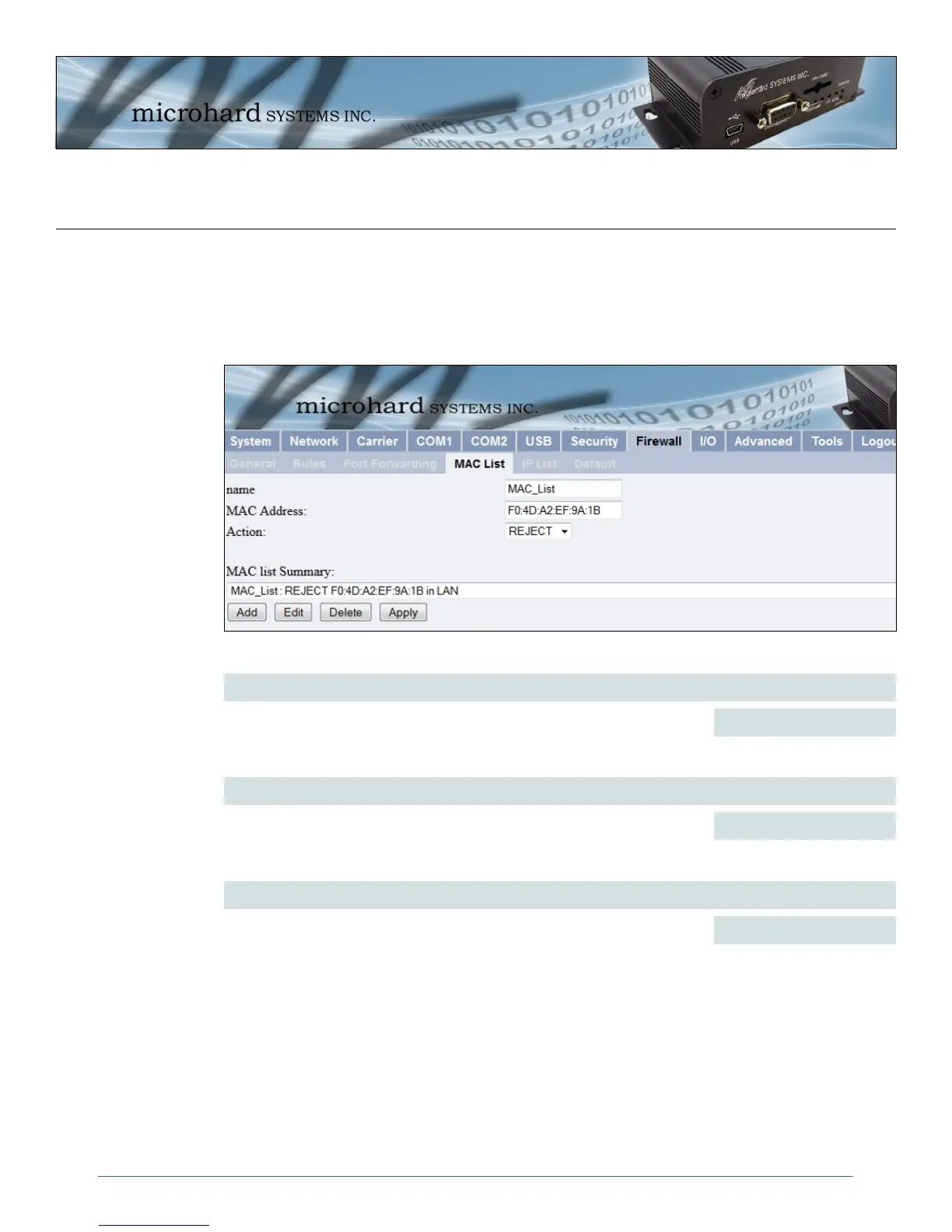 Image 4-41: Firewall Configuration, MAC List Config. Submenu