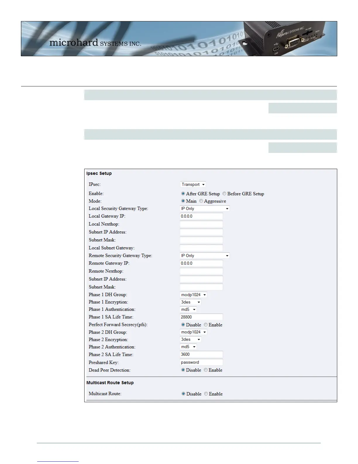 The setup for GRE IPsec is identical to the setup of VPN IPsec, refer to the previous section for
