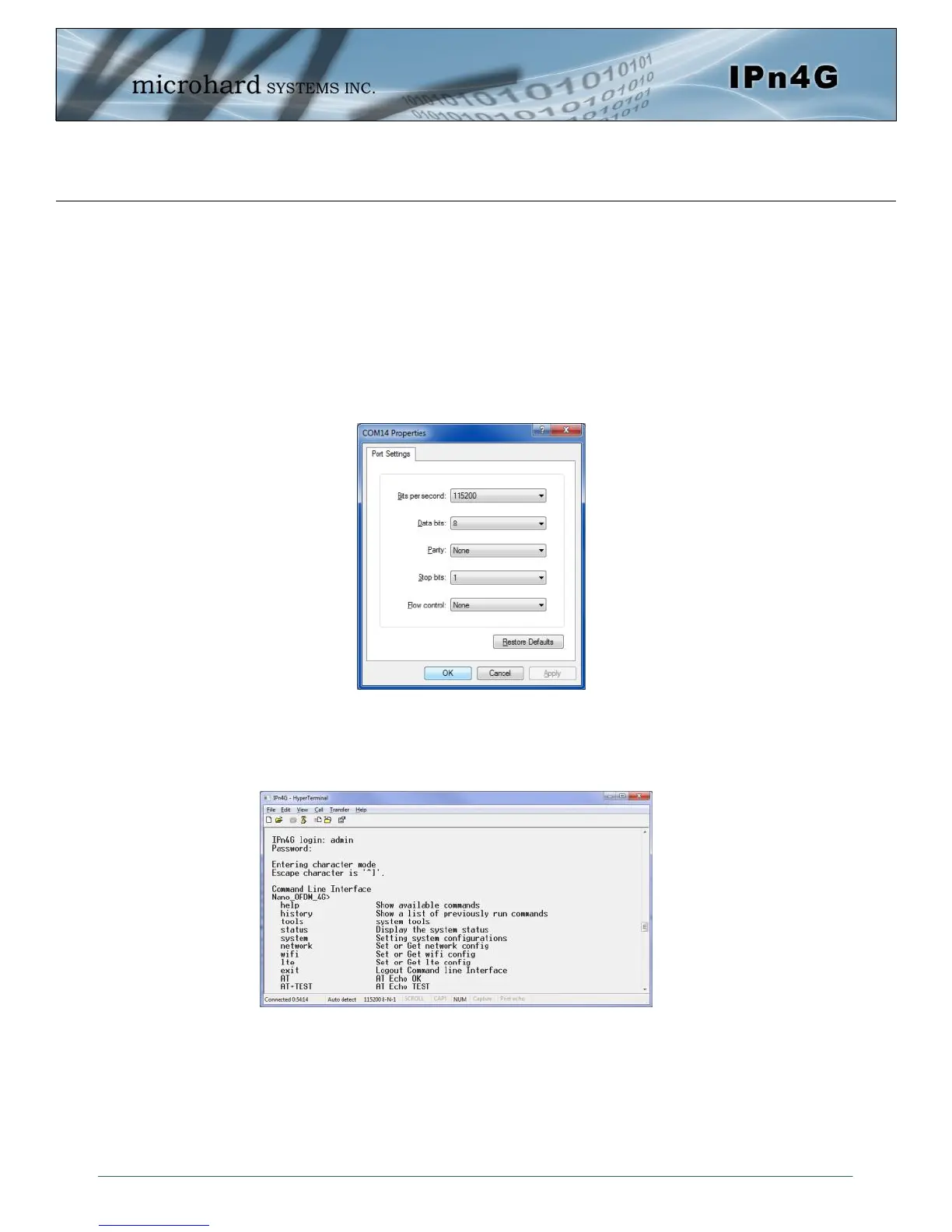 (Hyperterminal, Tera Term, ProComm, Putty etc) can then be used to communicate with the IPn4G. The