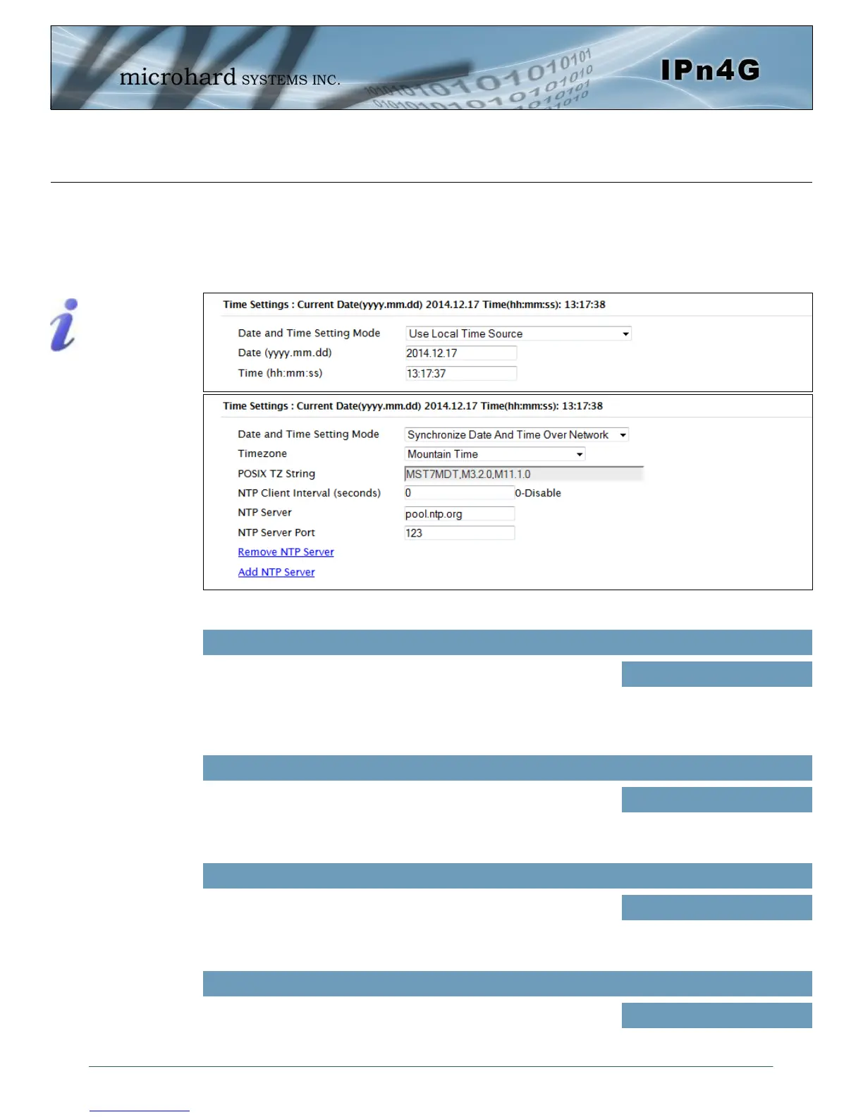 The IPn4G can be set to use a local time source, thus keeping time on its own, or it can be
