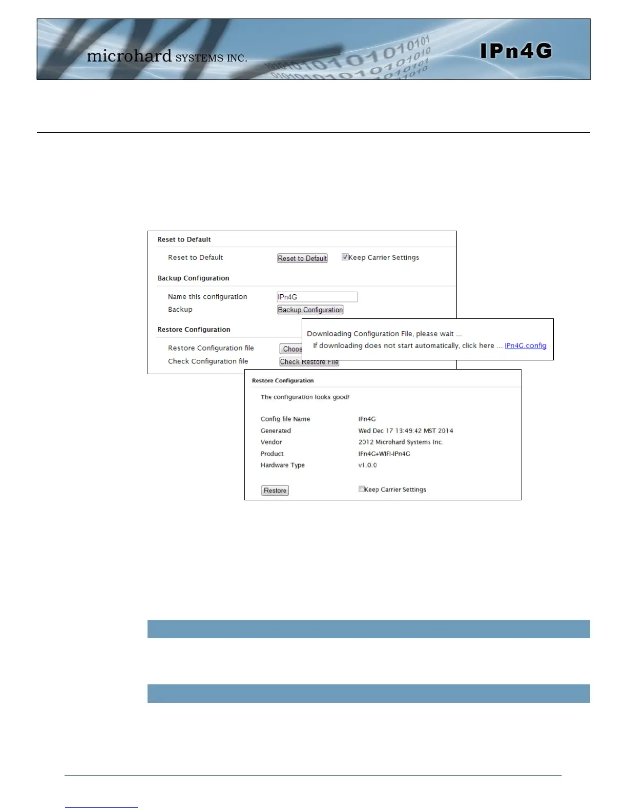 Microhard Systems IPN4G - Backup & Restore Configurations; Reset to Default