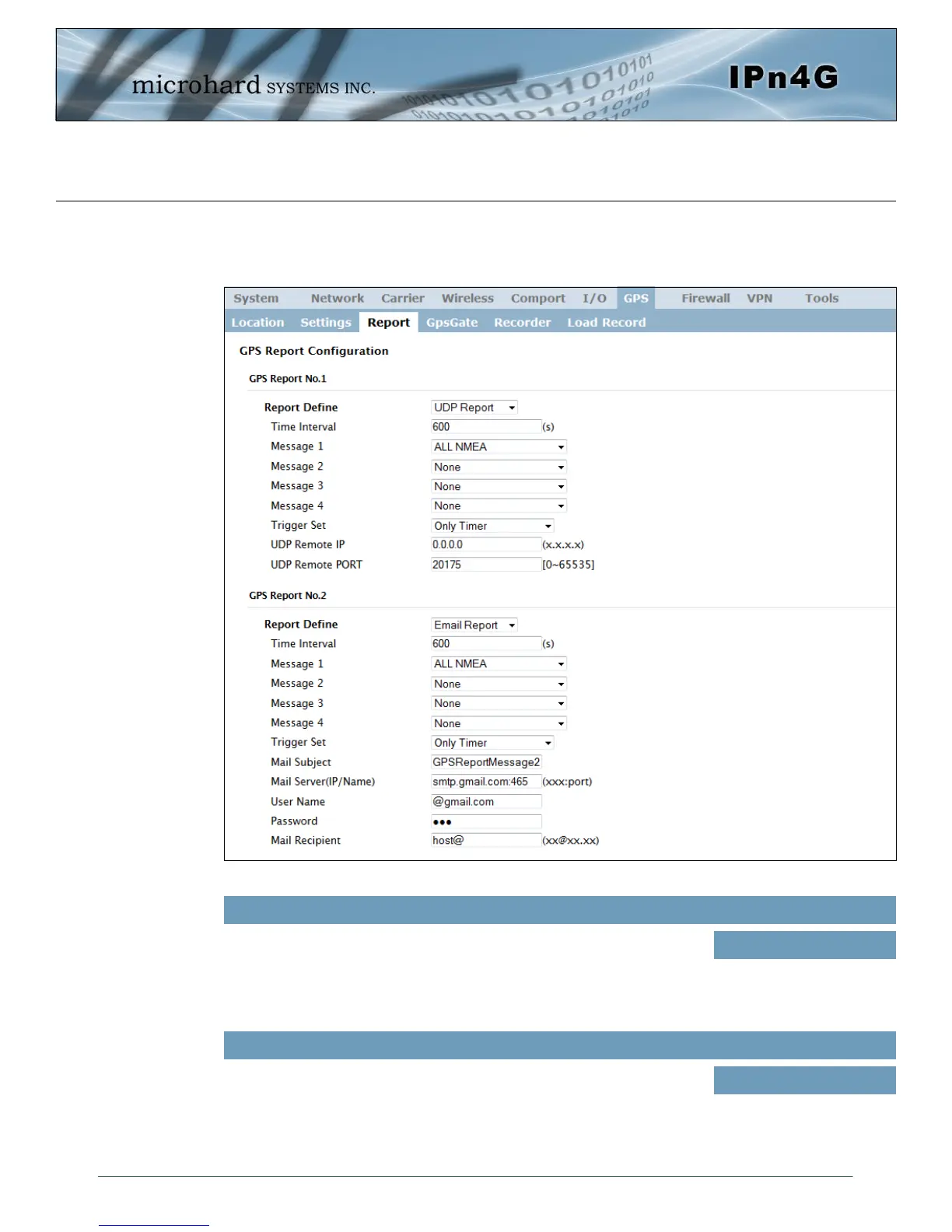 The IPn4G can provide customizable reporting to up to 4 hosts using UDP or Email Reporting.