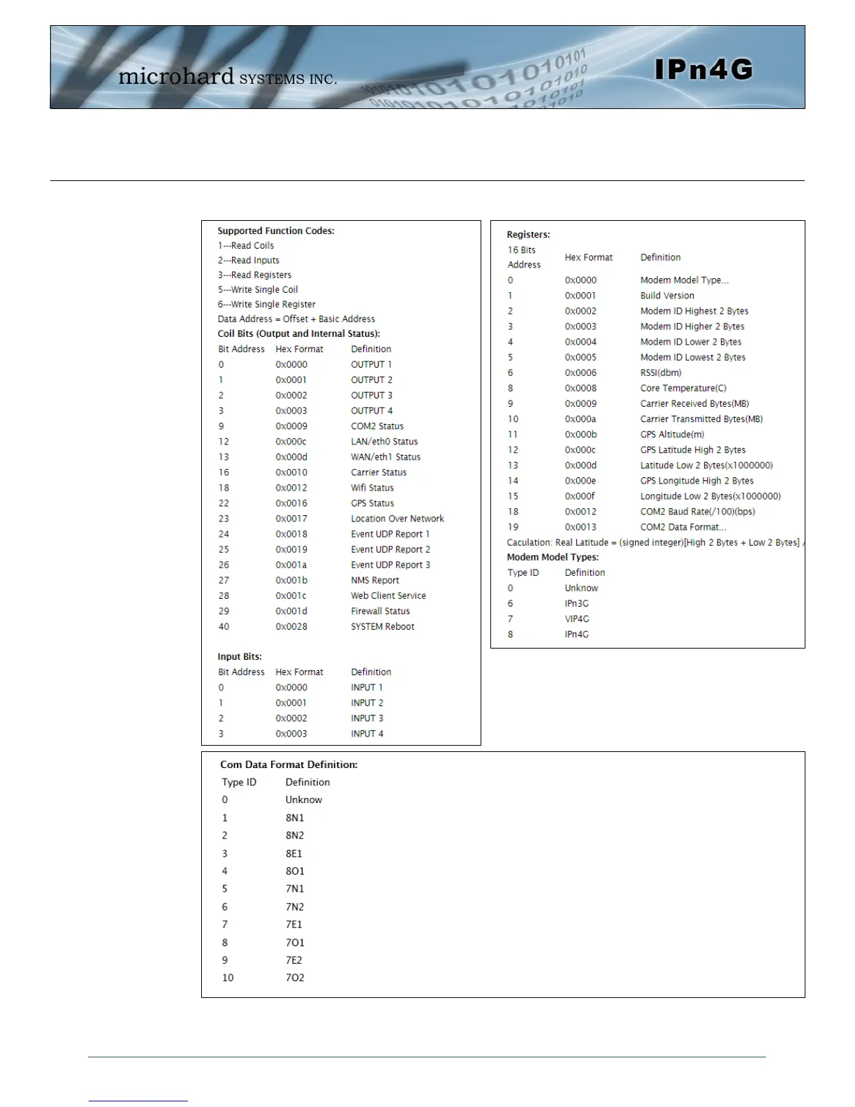 Microhard Systems IPN4GB - Modbus Data Map