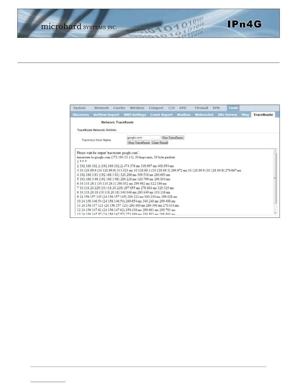 Microhard Systems IPN4GB - Traceroute