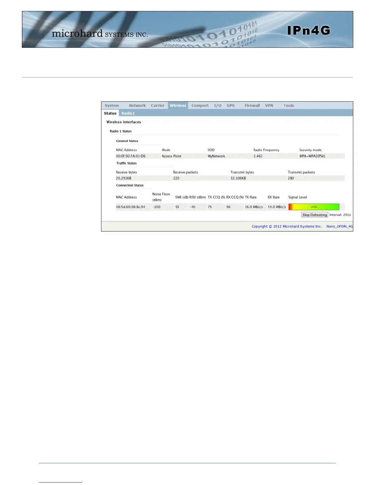 The status of the WiFi connection should also be visible in the Wireless > Status