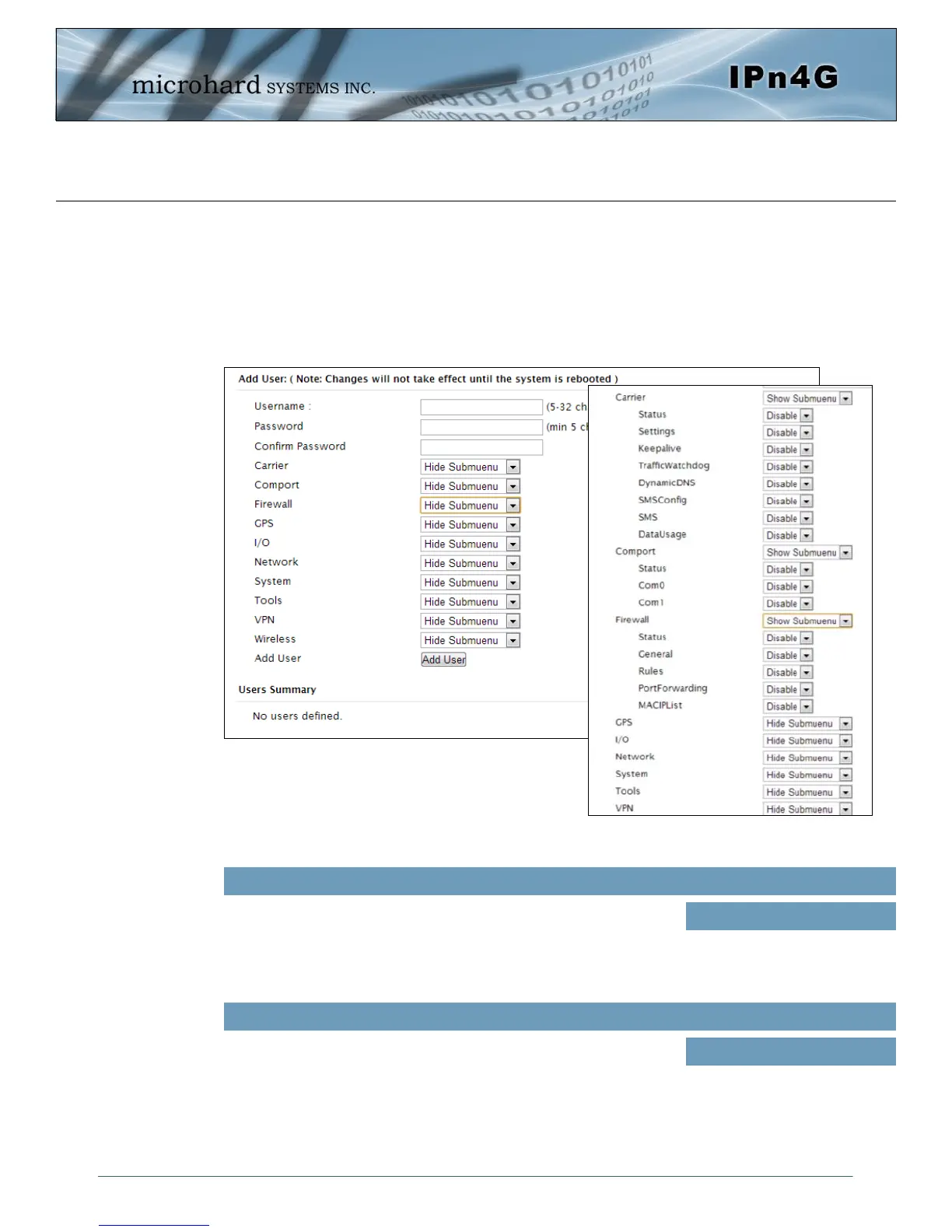 Different users can be set up with customized access to the WebUI. Each menu or tab of the