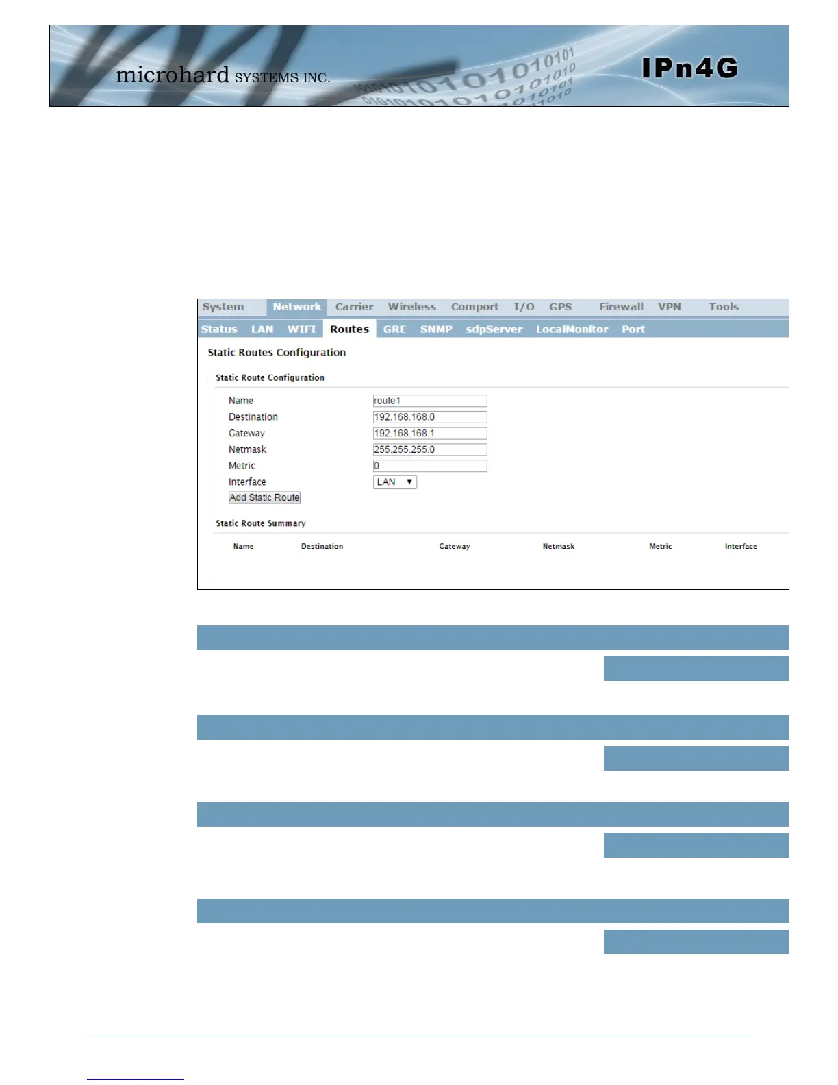 can be accomplished by specifying a static route, telling the IPn4G where to send data.
