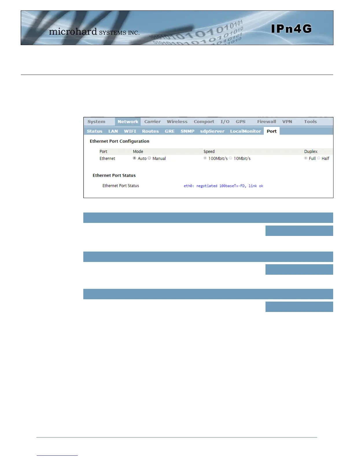 The Ethernet Port Status shows the current status of the Ethernet port, and in the case of ‘Auto’,
