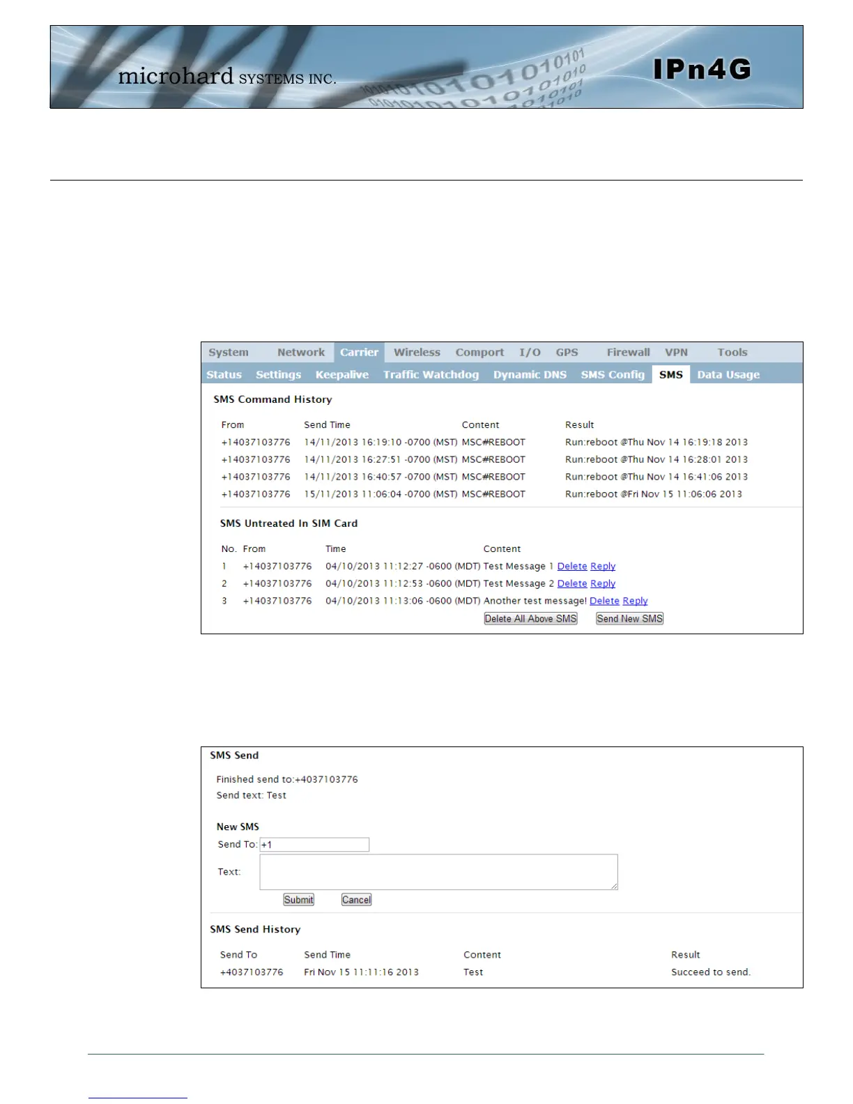 The SMS messages can be sent directly from the IPn4G WebUI interface. Also, the SMS