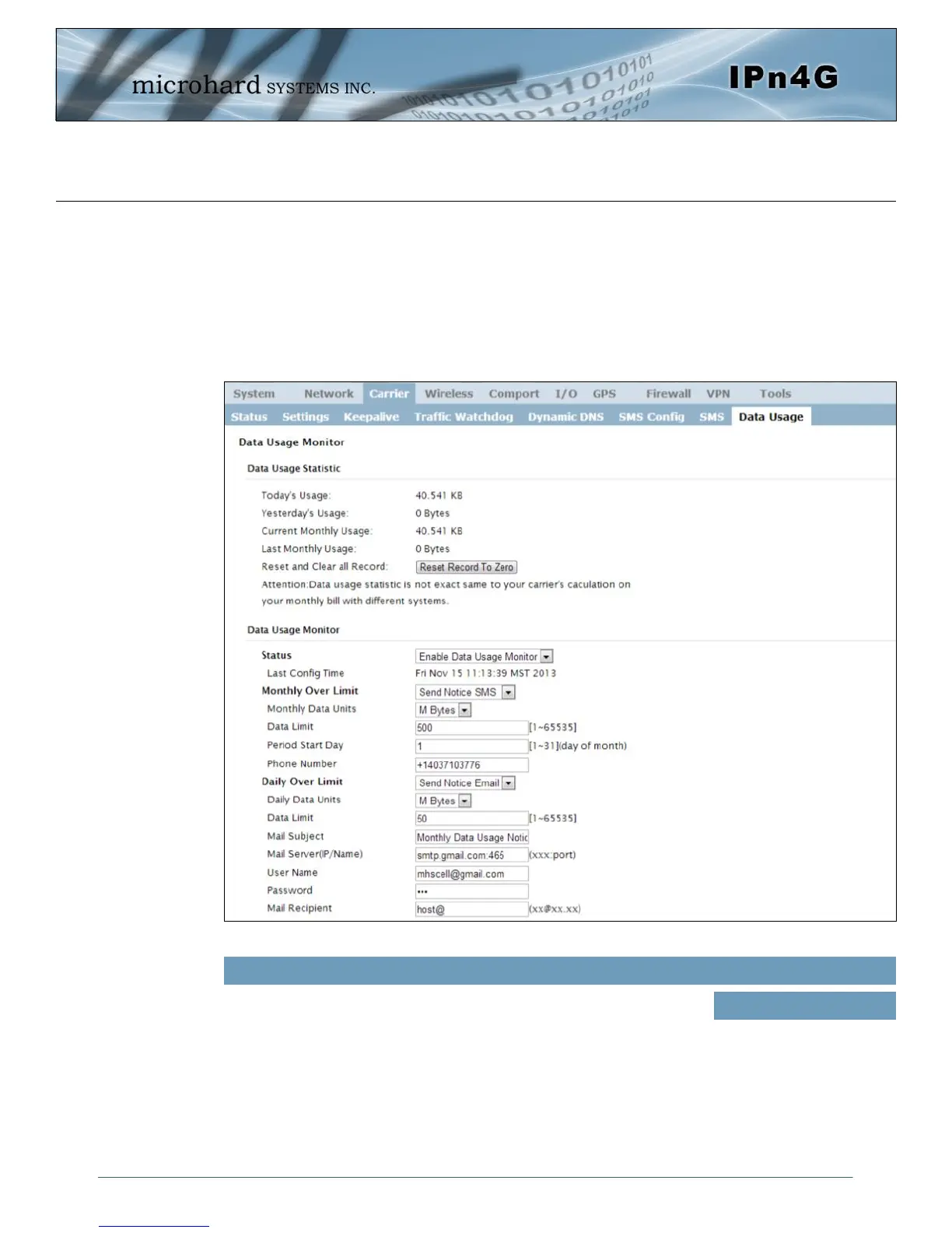 The Data Usage tool on the IPn4G allows users to monitor the amount of cellular data