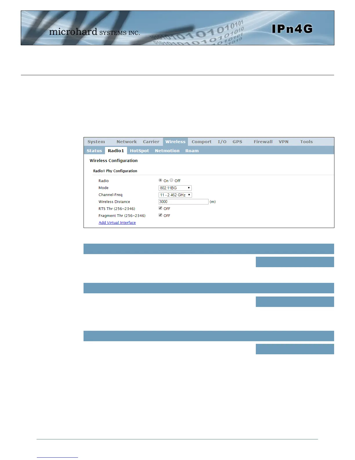 The top section of the Wireless Configuration allows for the configuration of the physical radio