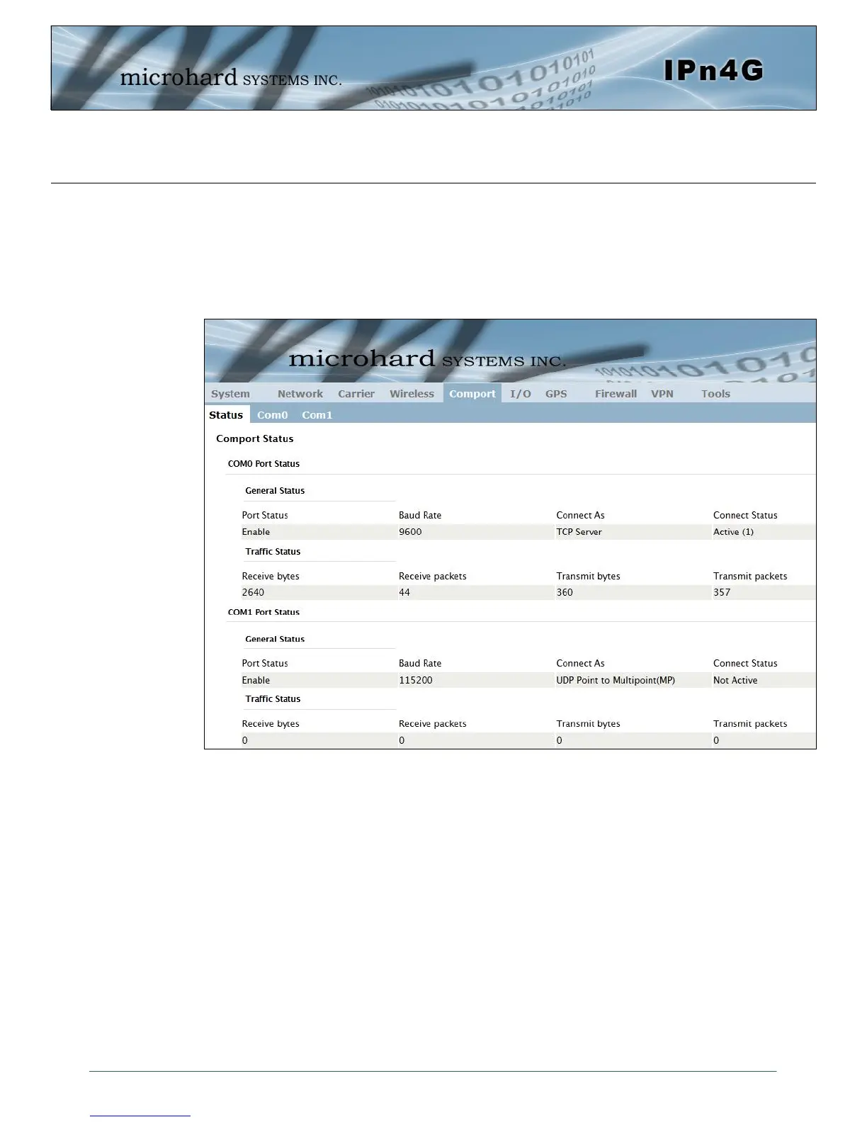 Microhard Systems IPN4GB - Comport Serial Configuration