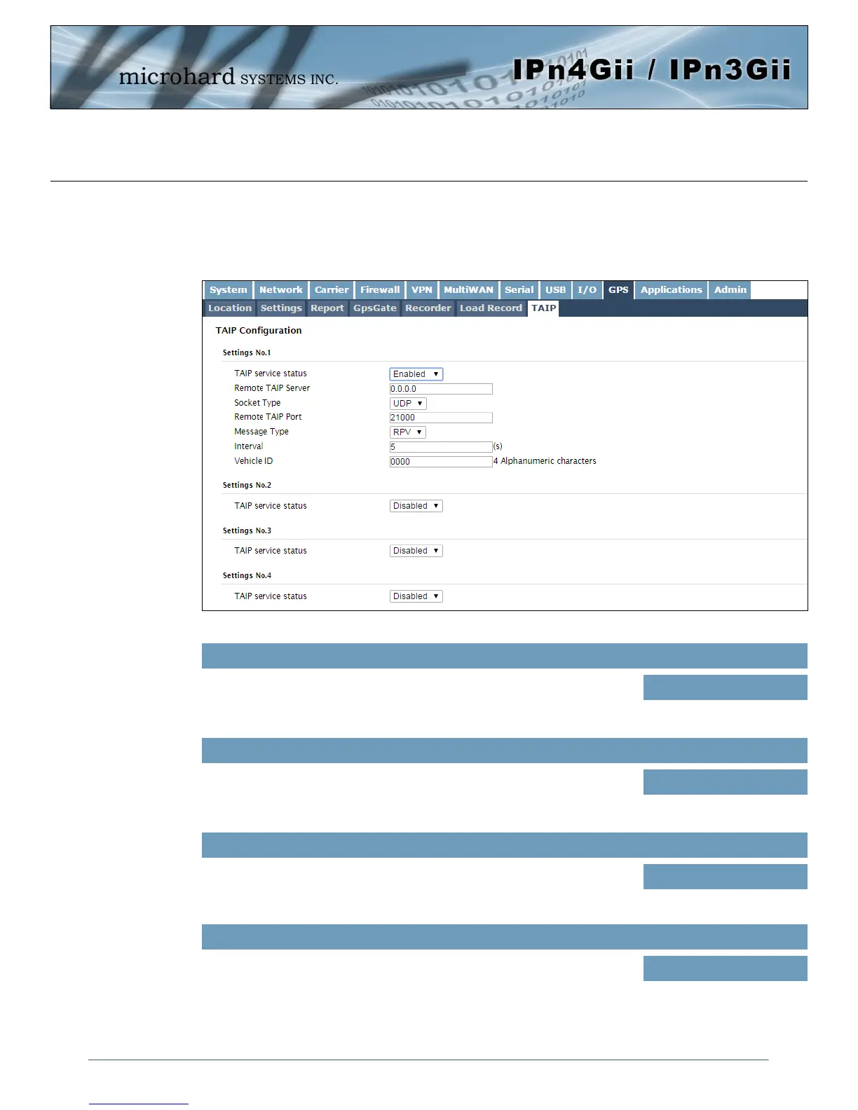 The IPnXGii has the ability to send GPS data in TAIP (Trimble ASCII Interface Protocol) format to up to 4