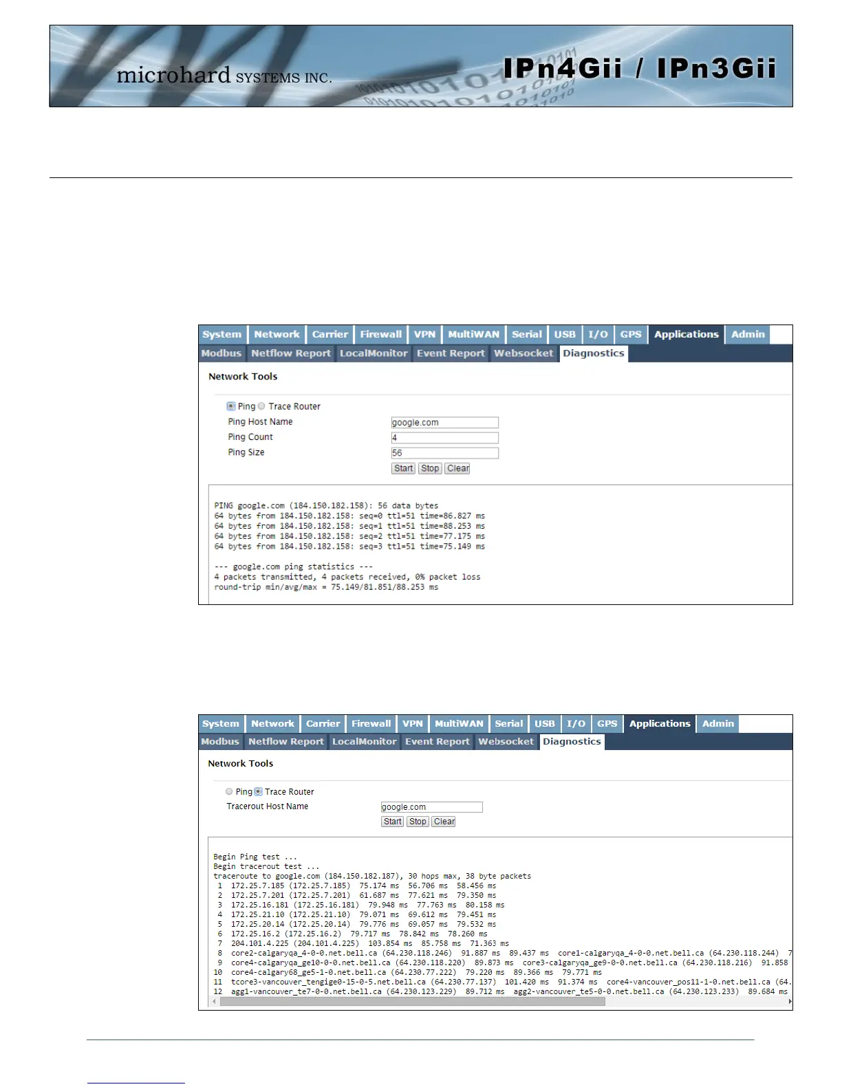 Image 4-11-9: Diagnostics > Trace Route