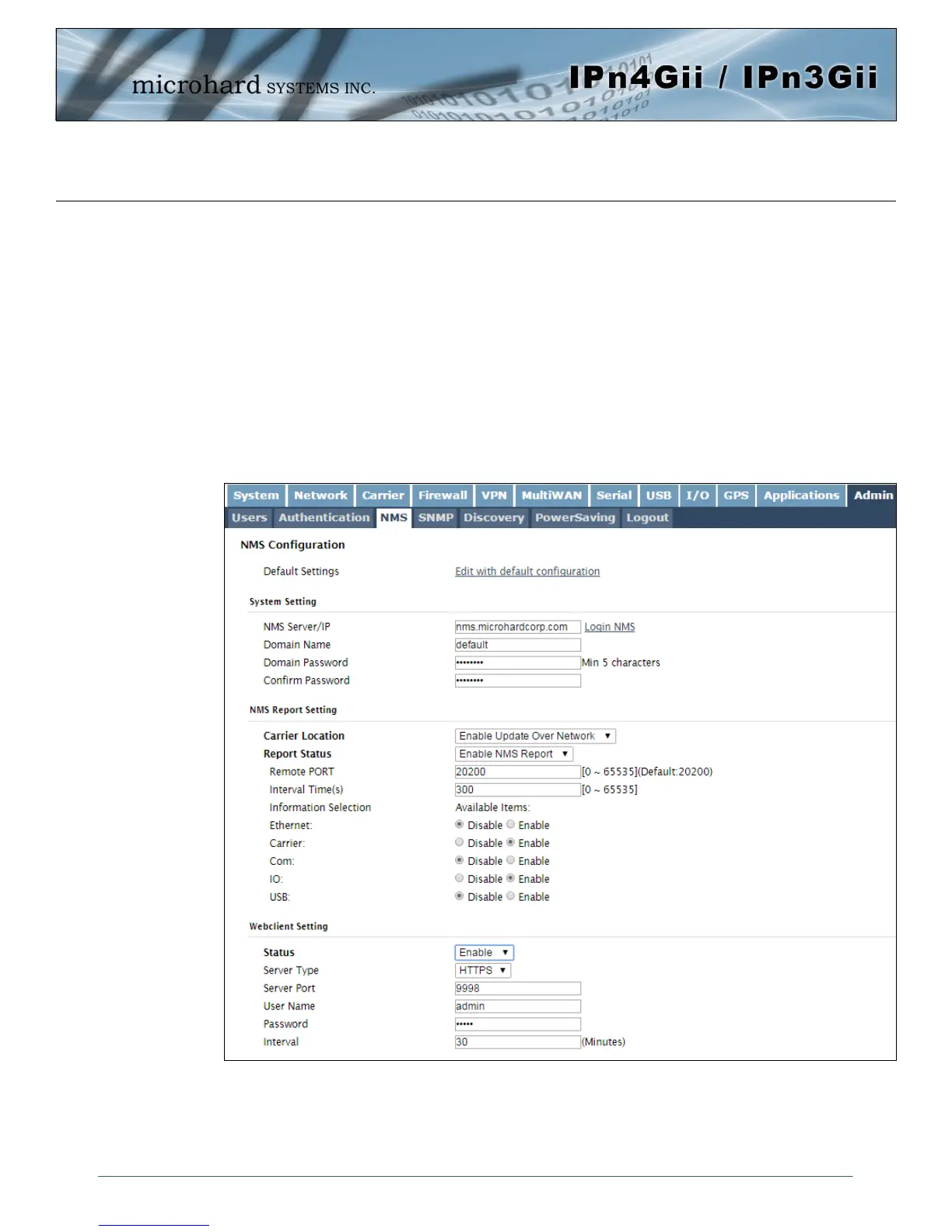 Once NMS has been configured, each IPnXGii must be configured to report into NMS.