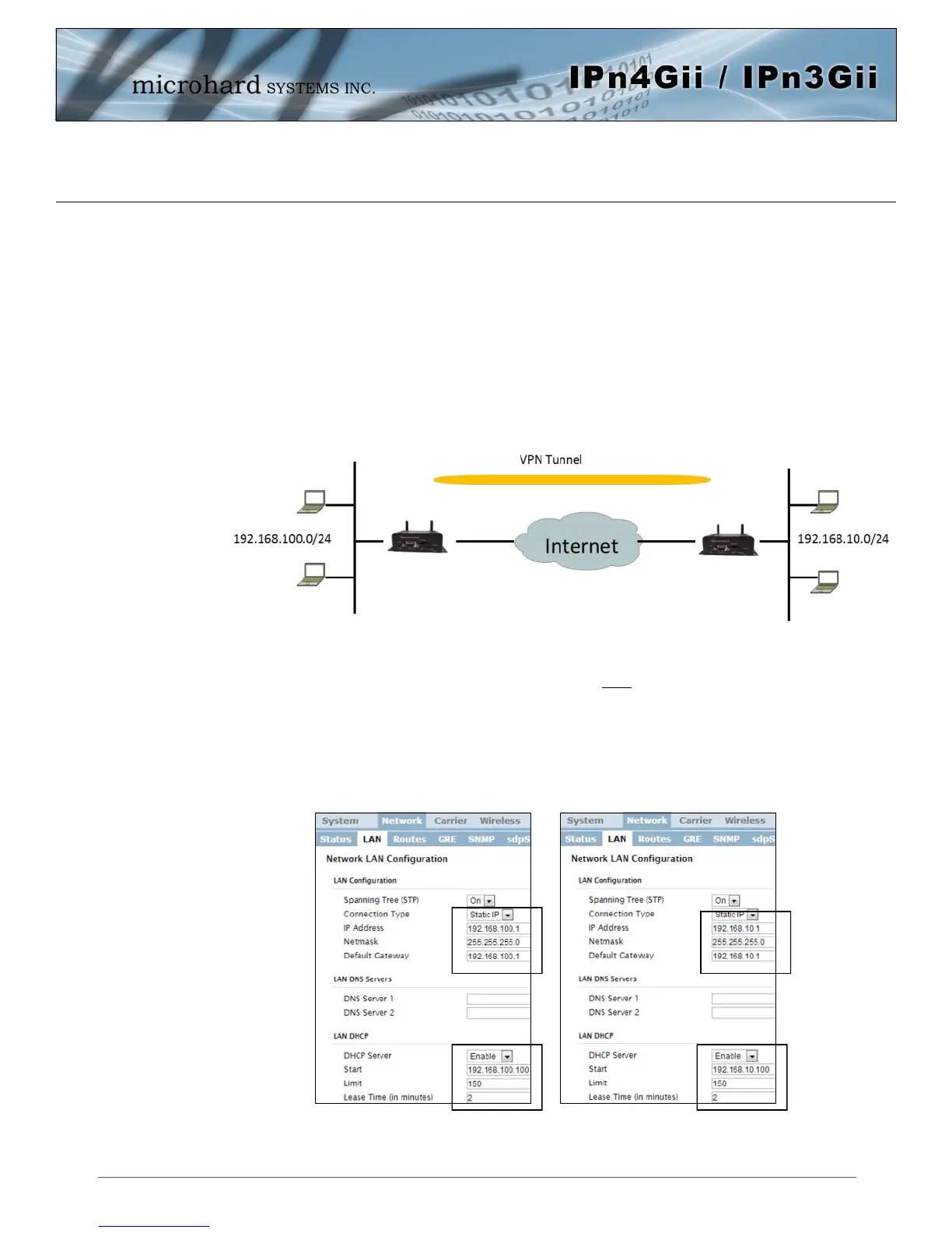 Configure the LAN IP and subnet for each IPnXGii. The subnets must be different and cannot overlap.