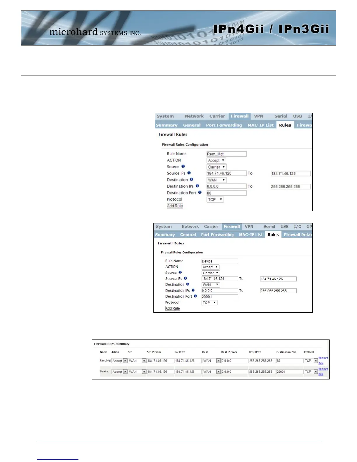 write the rules to the IPn3Gii. The Firewall Rules Summary should look like what is shown below.