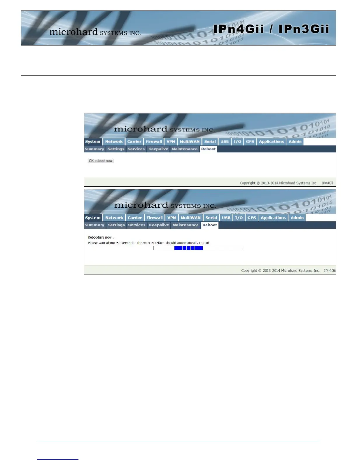 reboot now’ is provided. Once pressed, the unit immediately reboots and starts its boot up procedure.
