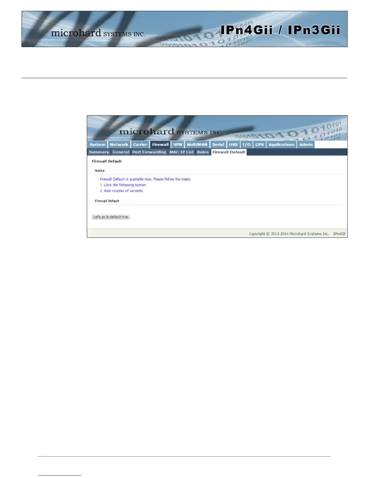 The Firewall Default option allows a user to return the modems firewall setting back to the default values