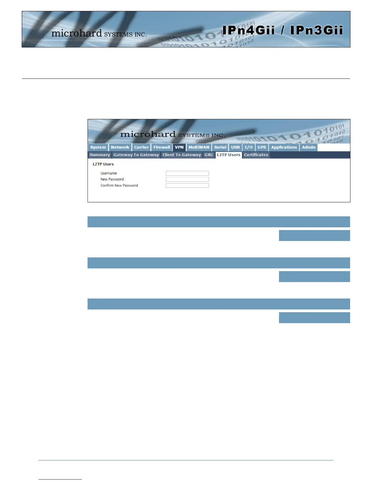For VPN L2TP operation, users will be required to provide a username and password. Use L2TP Users