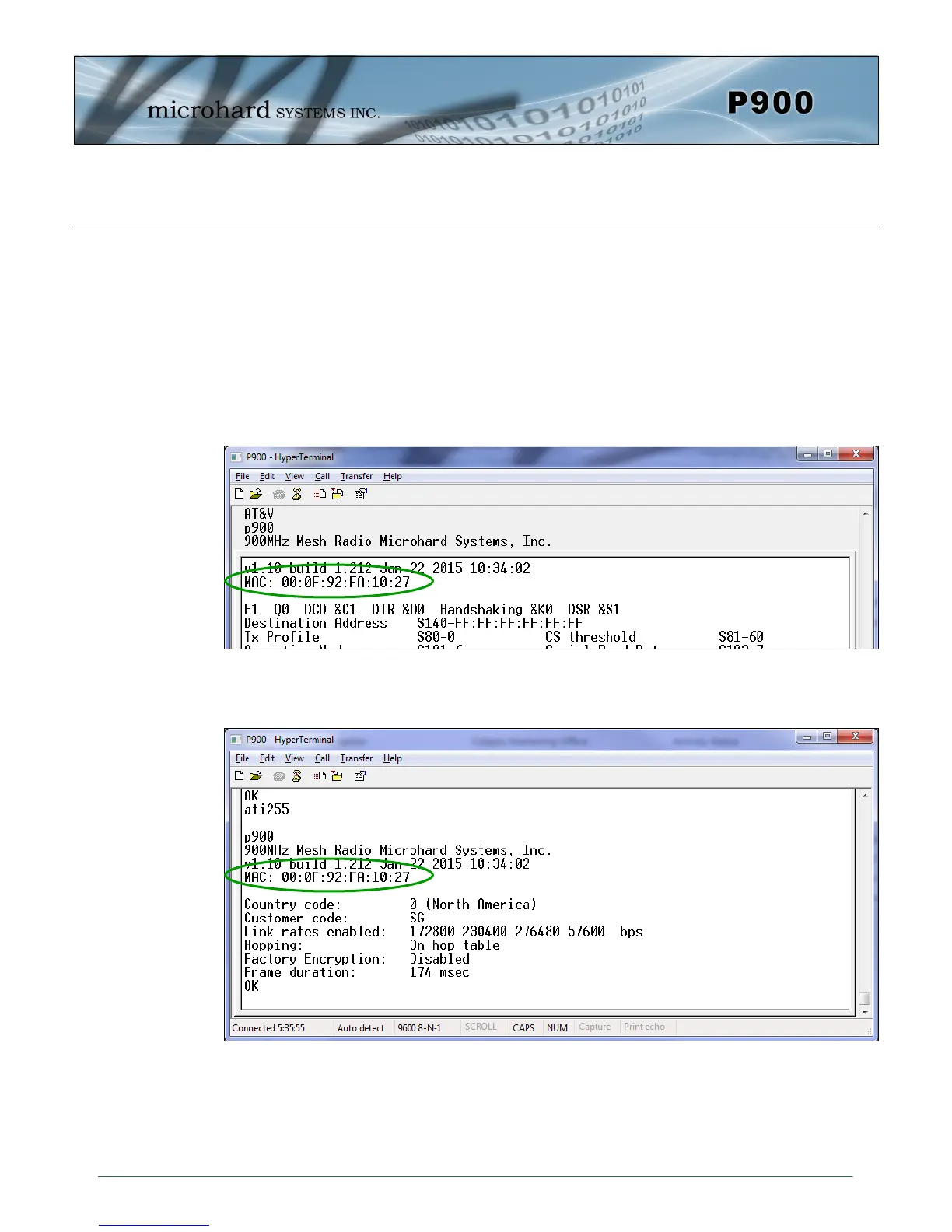 Image 3-9: Retrieving unit MAC Address from ATI255 Output