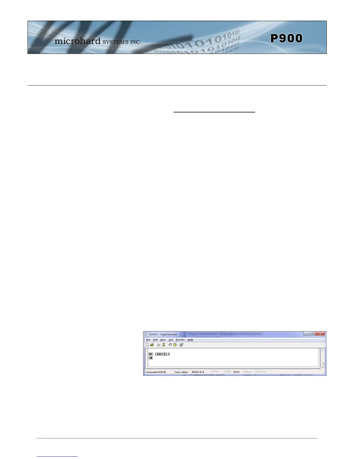 On power up the terminal session window should show “NO CARRIER OK” as seen