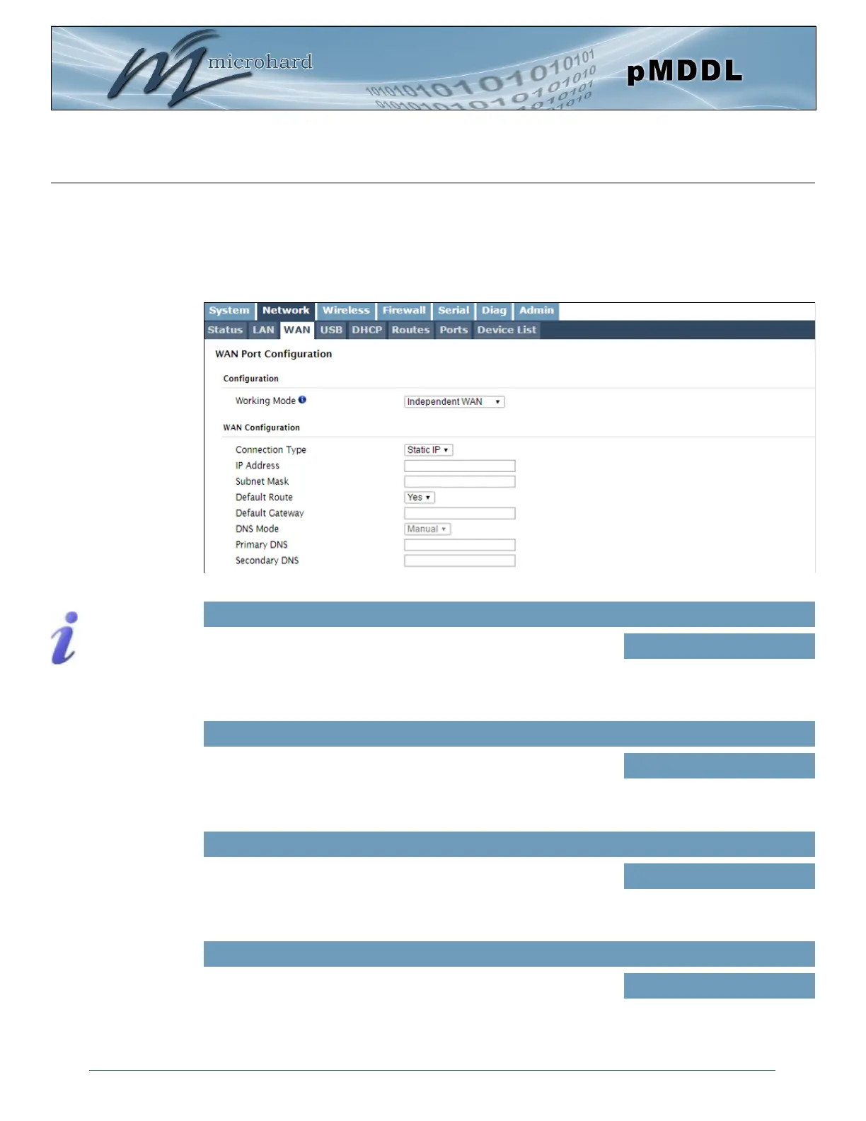 The WAN configuration refers to the wired WAN connection on the pMDDL. The WAN port can be used to