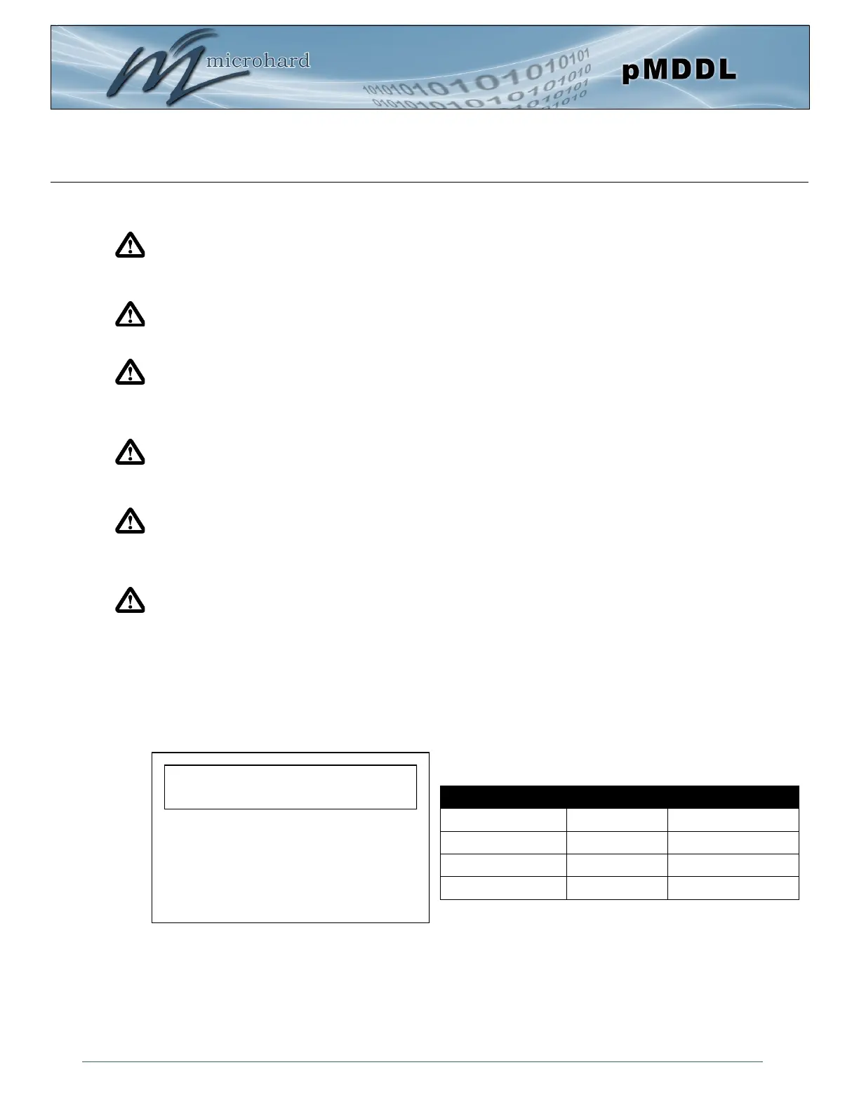 Changes or modifications not expressly approved by Microhard Systems Inc. could void the users authority to operate the equipment. This device