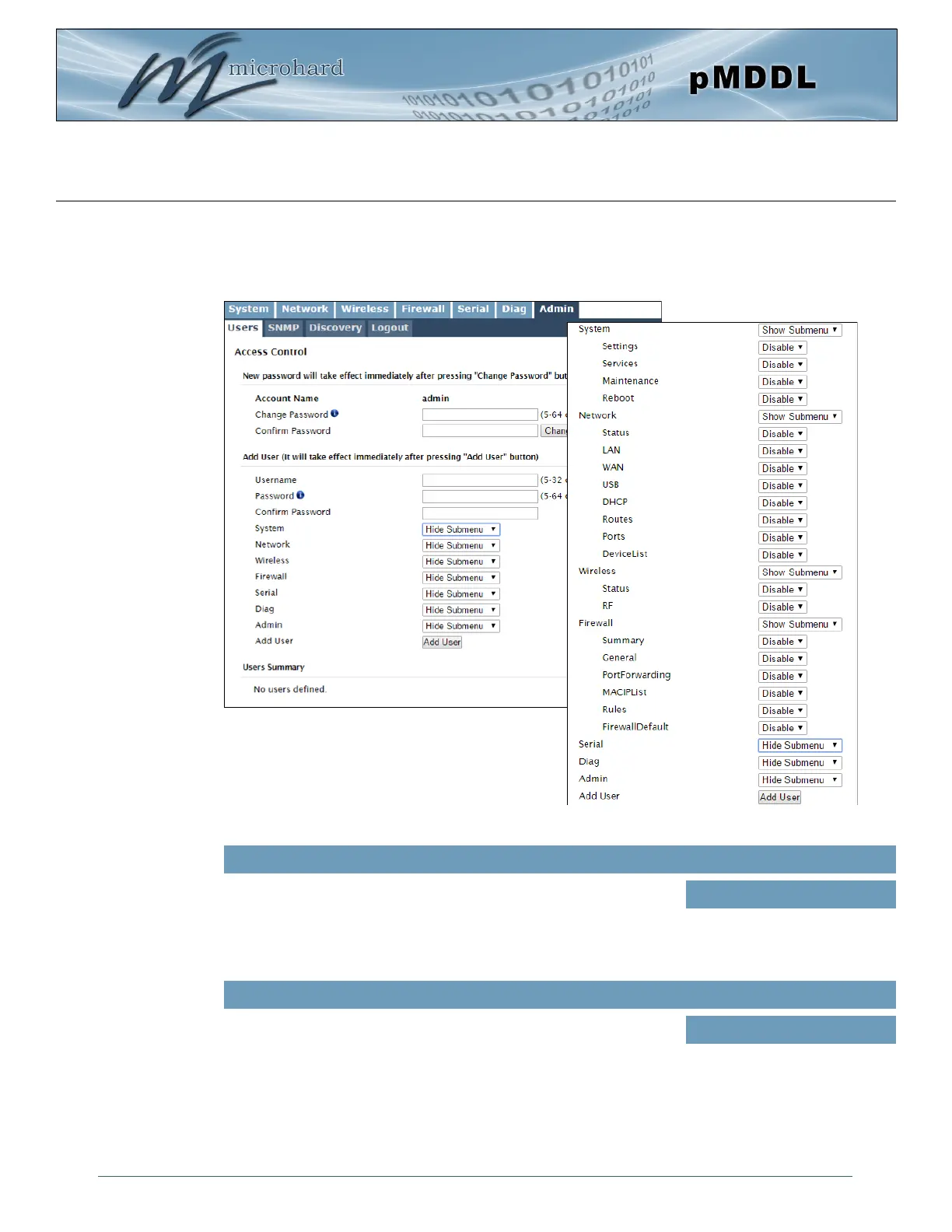 Different users can be set up with customized access to the WebUI. Each menu or tab of the WebUI can