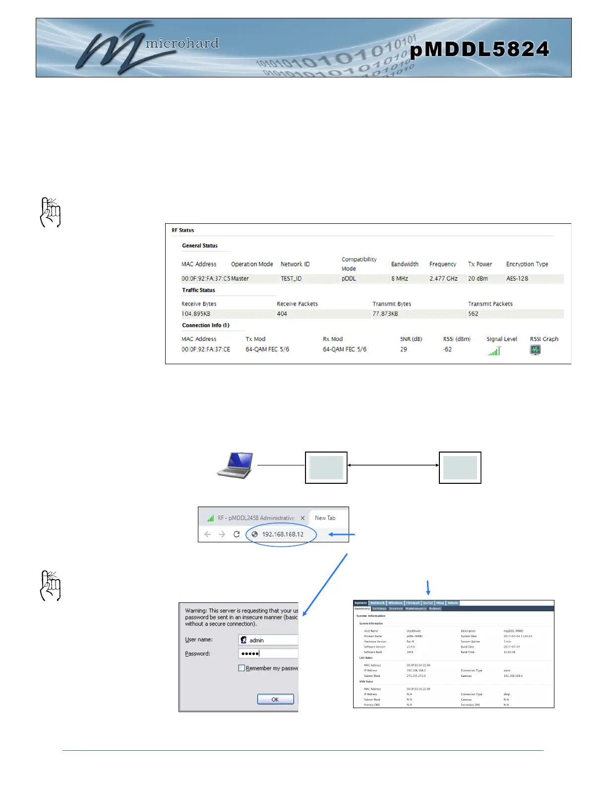 ✓ With a PC connected to the Master (M), type in the IP address of the Slave (S)