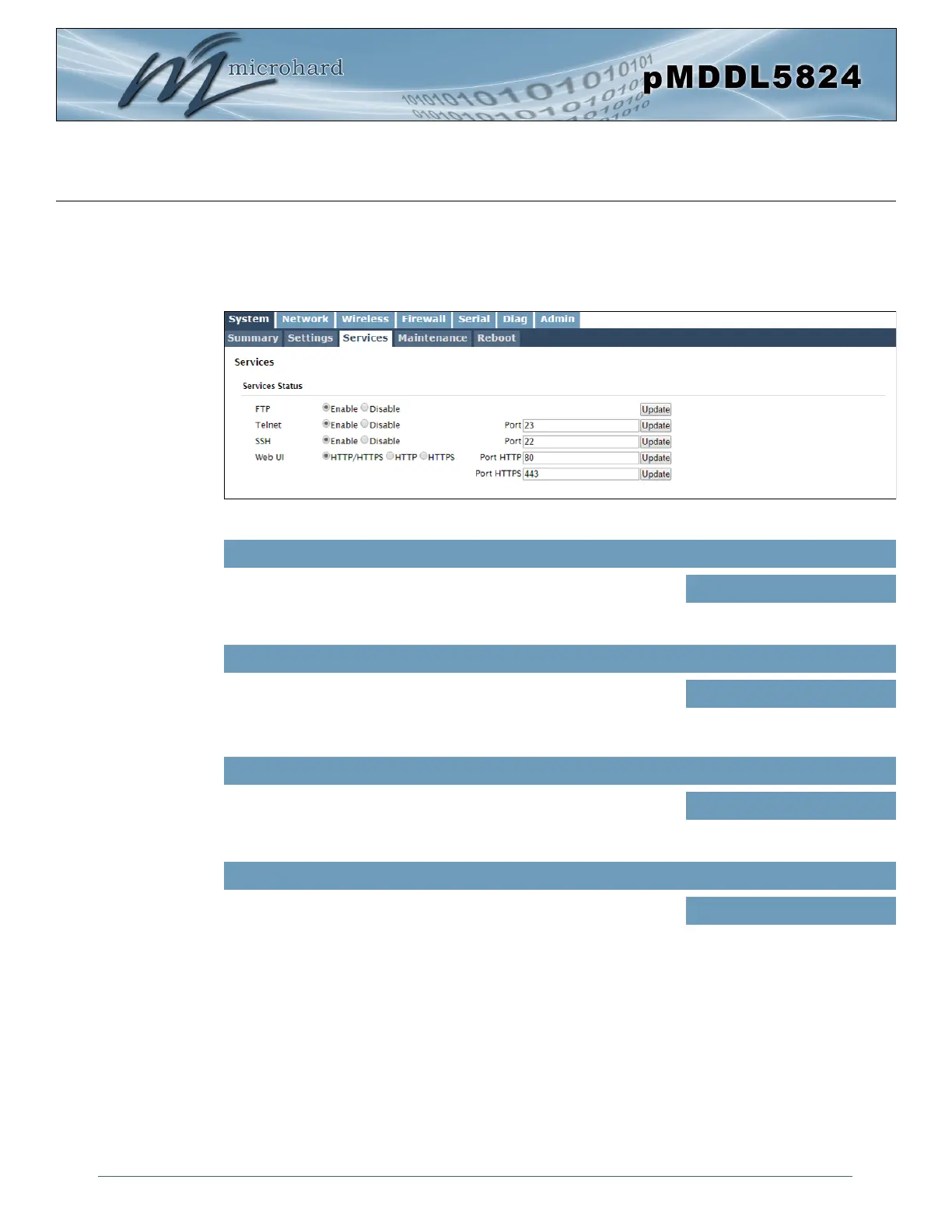 Certain services in the pMDDL5824 can be disabled or enabled for either security considerations or