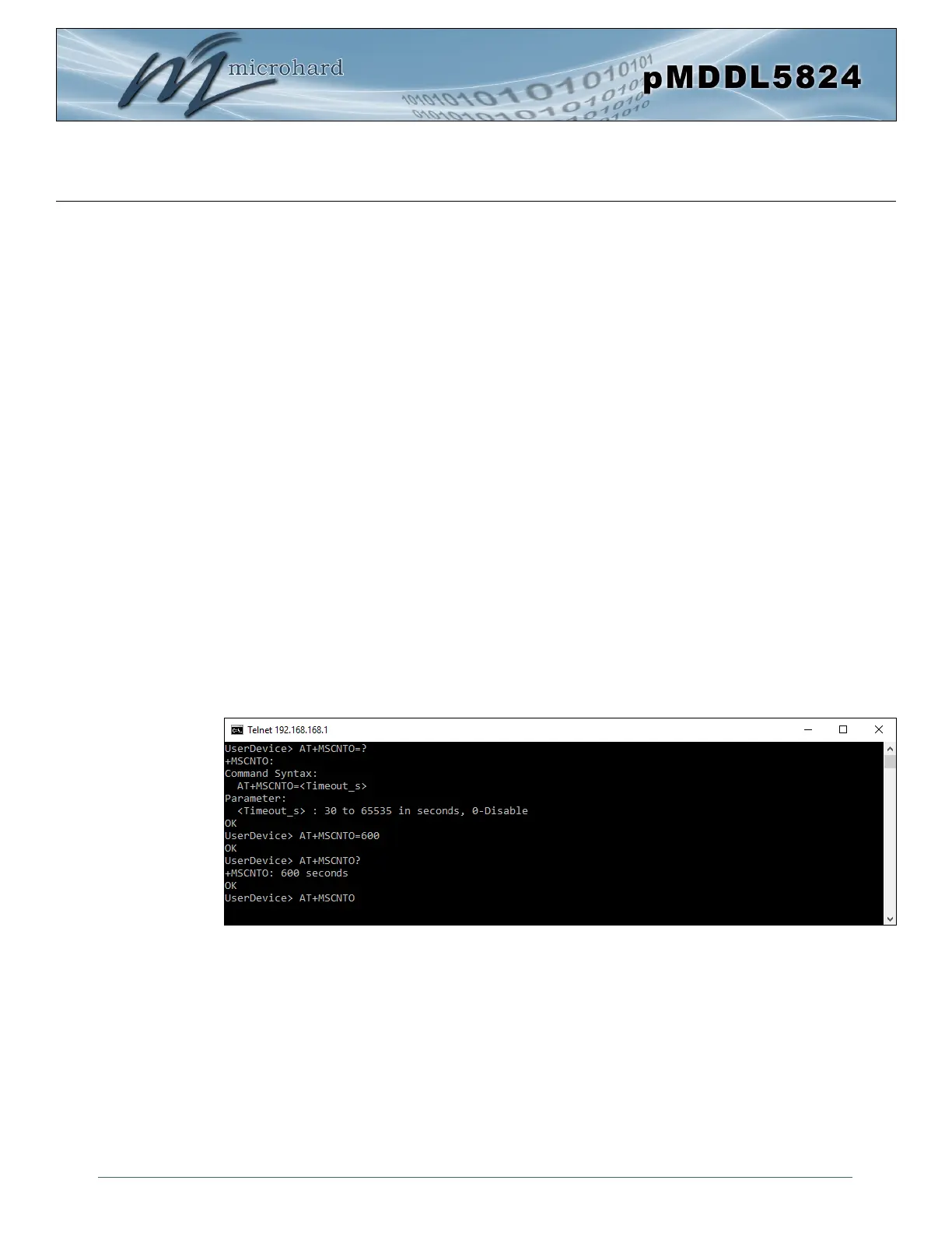 Command Syntax: AT+MSCNTO=<Timeout_s>