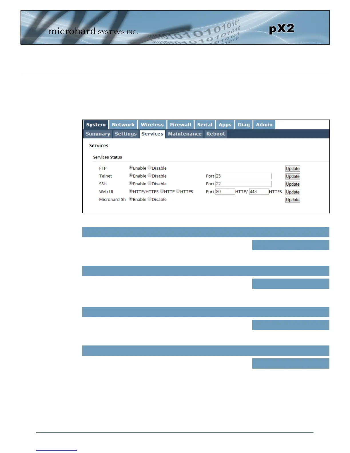 Certain services in the pX2 can be disabled or enabled for either security considerations or resource/power