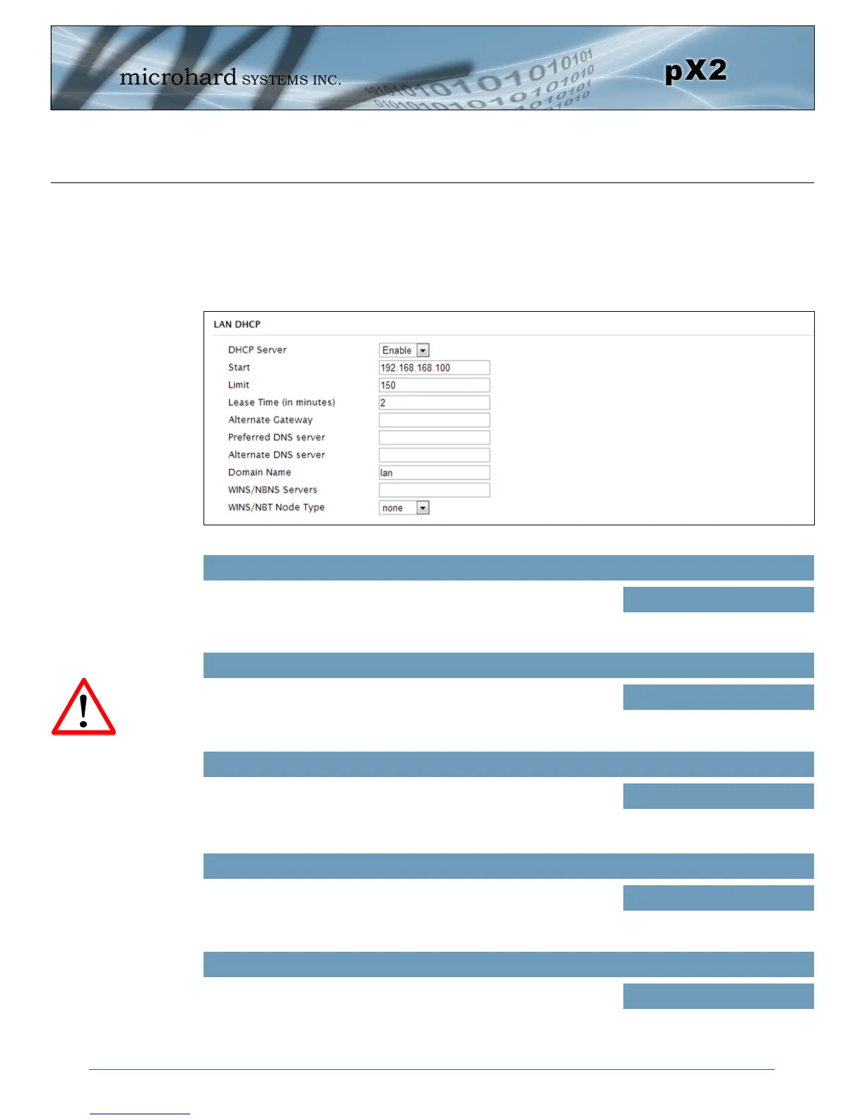 assigned an IP by the pX2. The LAN DHCP service is available for each interface, and is located in the