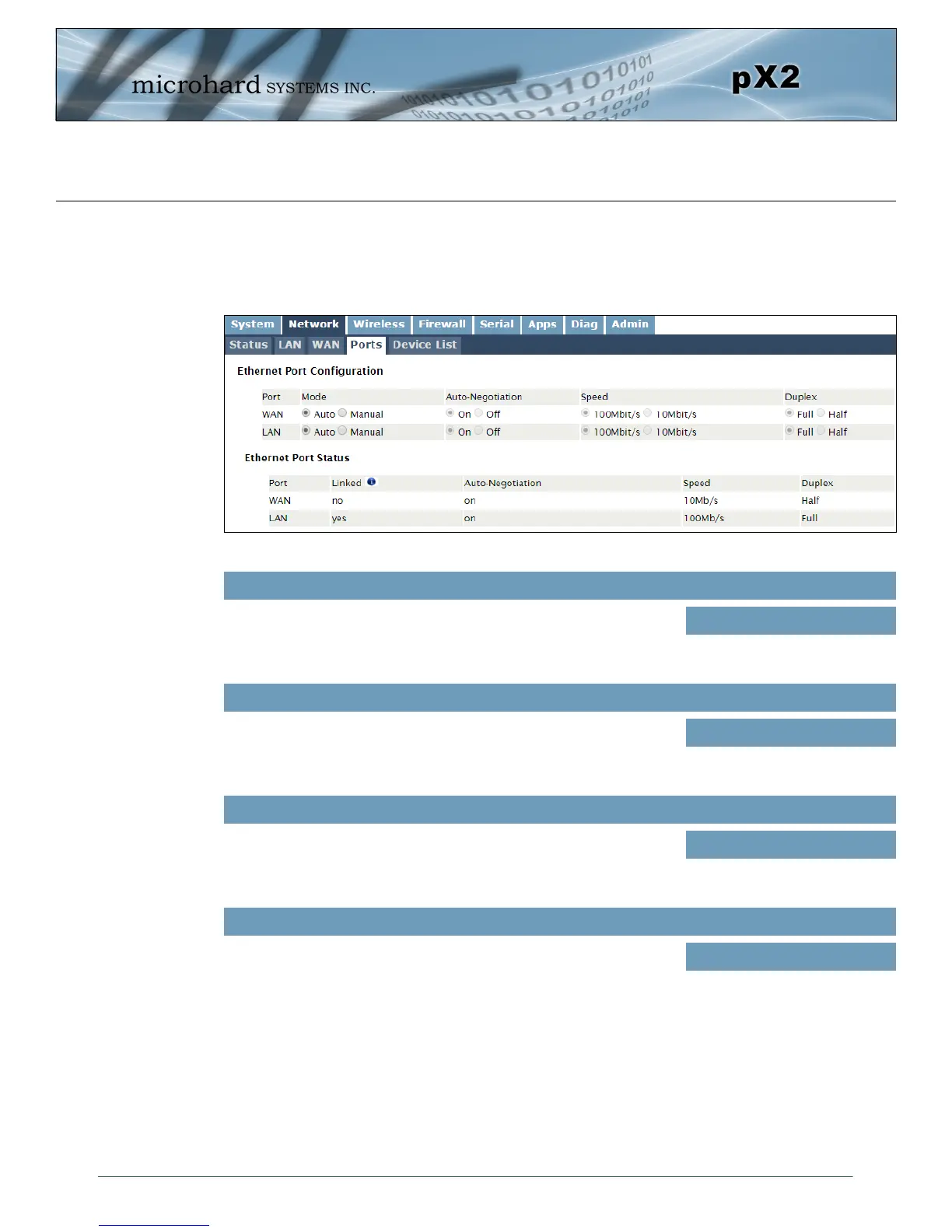 on the pX2. As seen below the Mode (Auto/Manual), Auto-Negotiation, Speed (10/100Mbit/s) and the