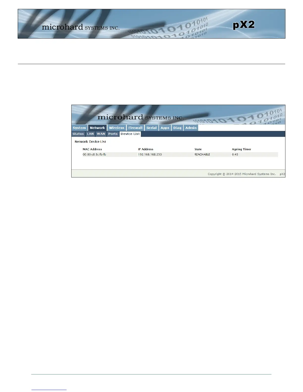 The Network > Device List shows the current ARP table for the local network adapter. The MAC address