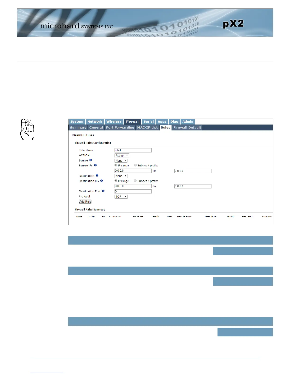 different ports and services. MAC List and IP List are used for general access, and are applied before rules