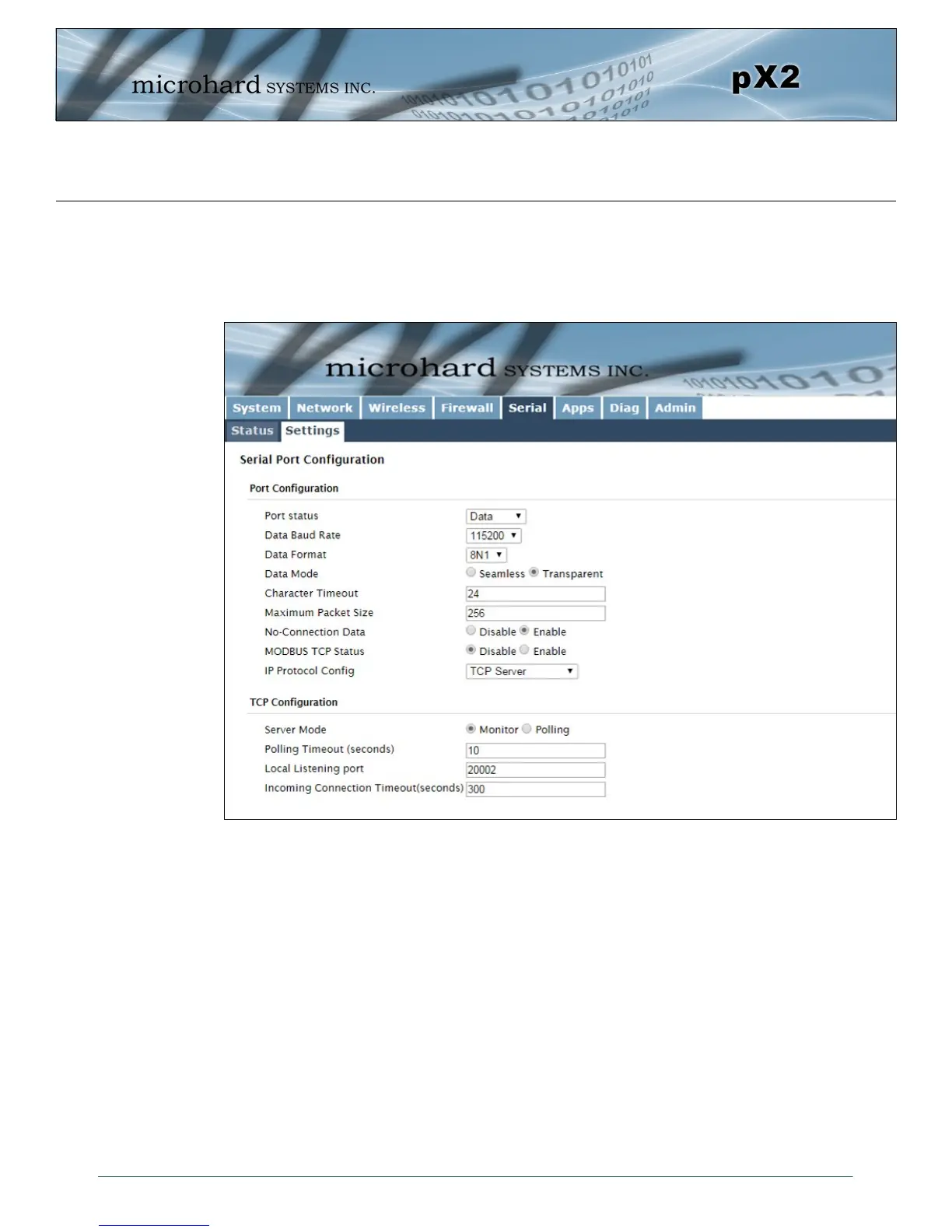 Image 4-5-2: Serial > Settings Configuration