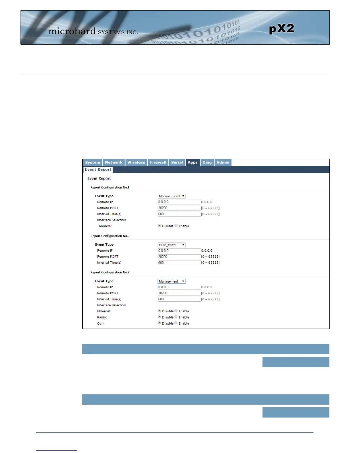 Event Reporting allows the pX2 to send periodic updates via UDP packets. These packets are