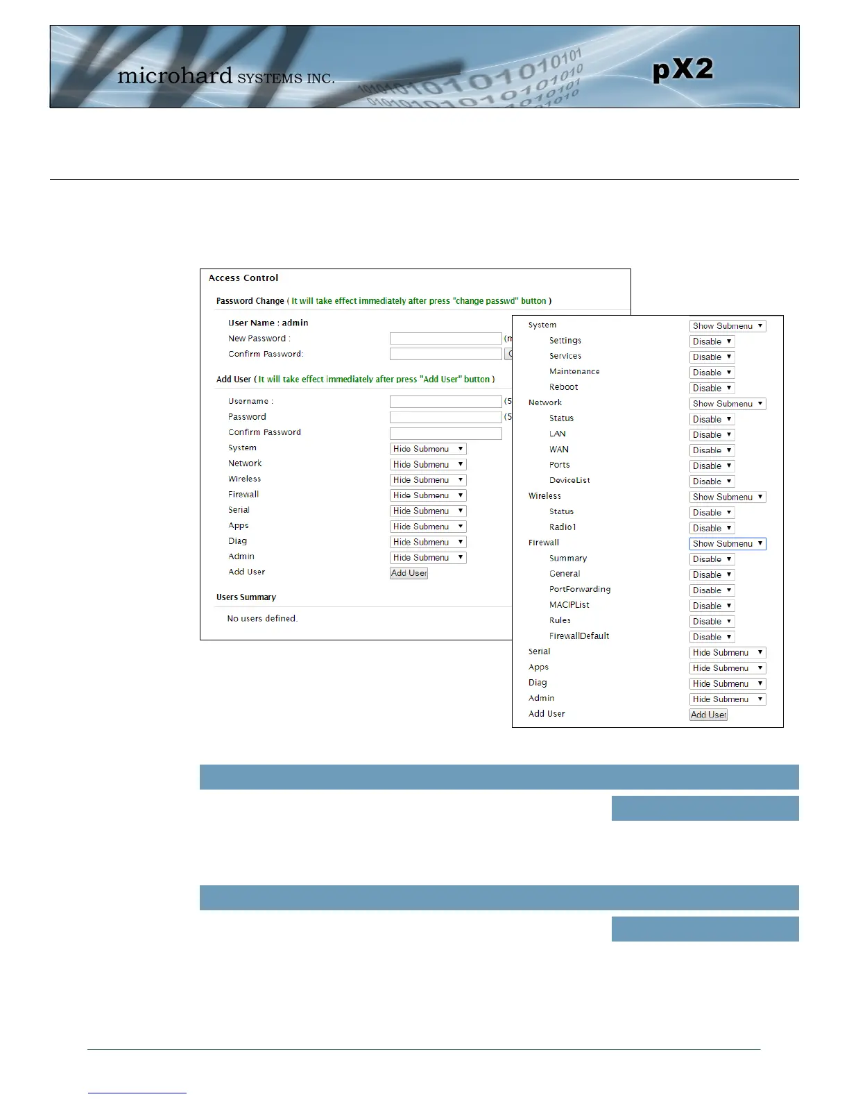 Different users can be set up with customized access to the WebUI. Each menu or tab of the WebUI can