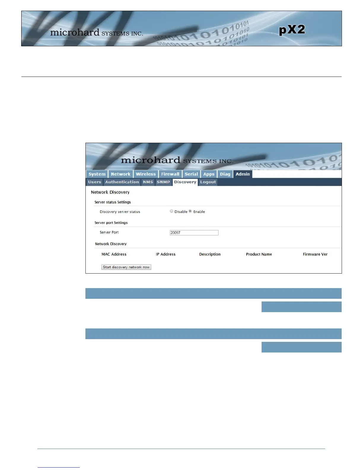 The Network discovery tool allows the pX2 to send a broadcast to all Microhard devices on the same