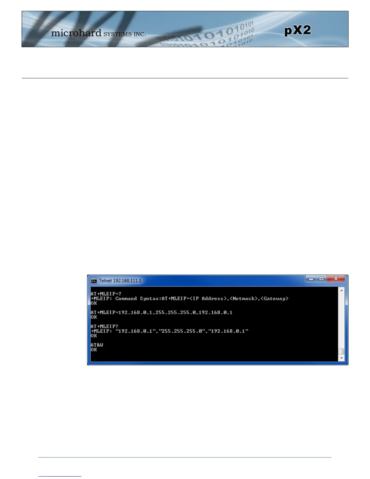 +MLEIP: Command Syntax:AT+MLEIP=<IP Address>,<Netmask>,<Gateway>